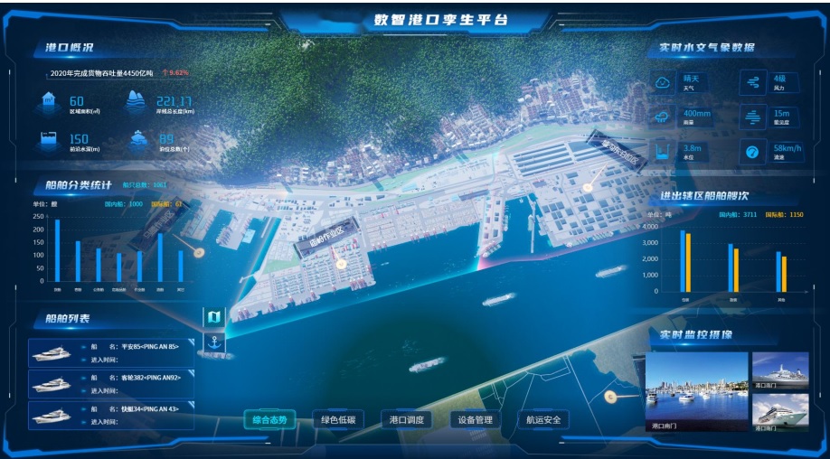 智慧港口可视化解决方案,以数字孪生可视化技术为核心,整合多渠道数据资源,打造港口信息枢纽,